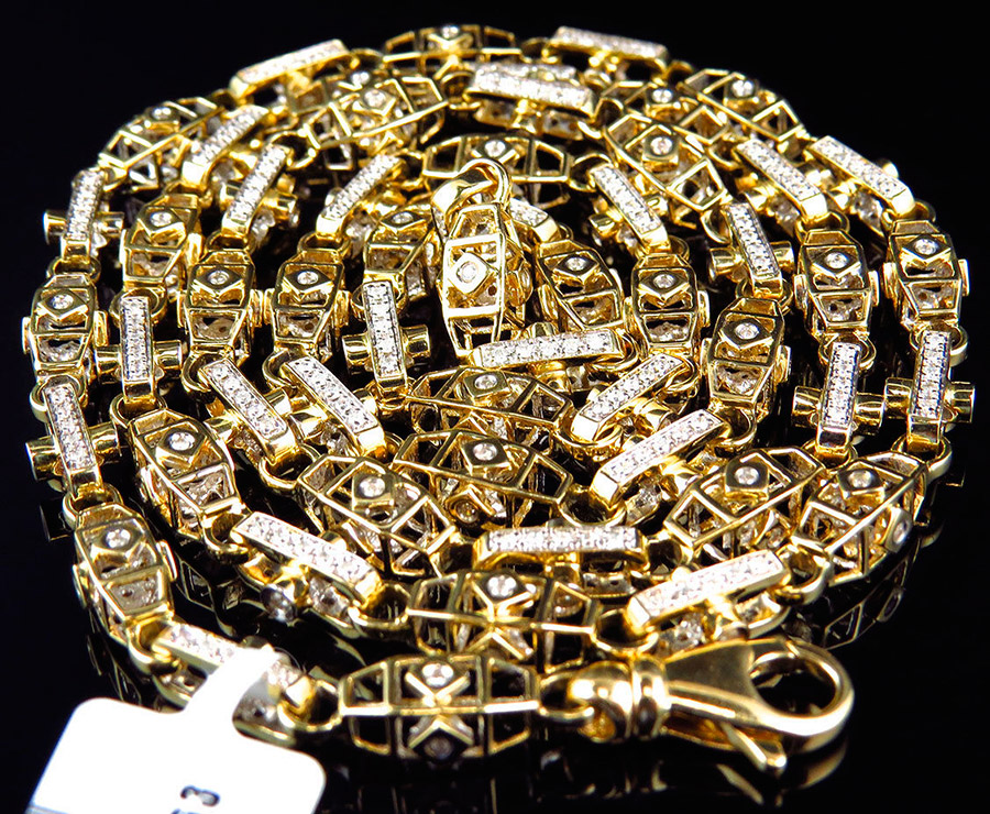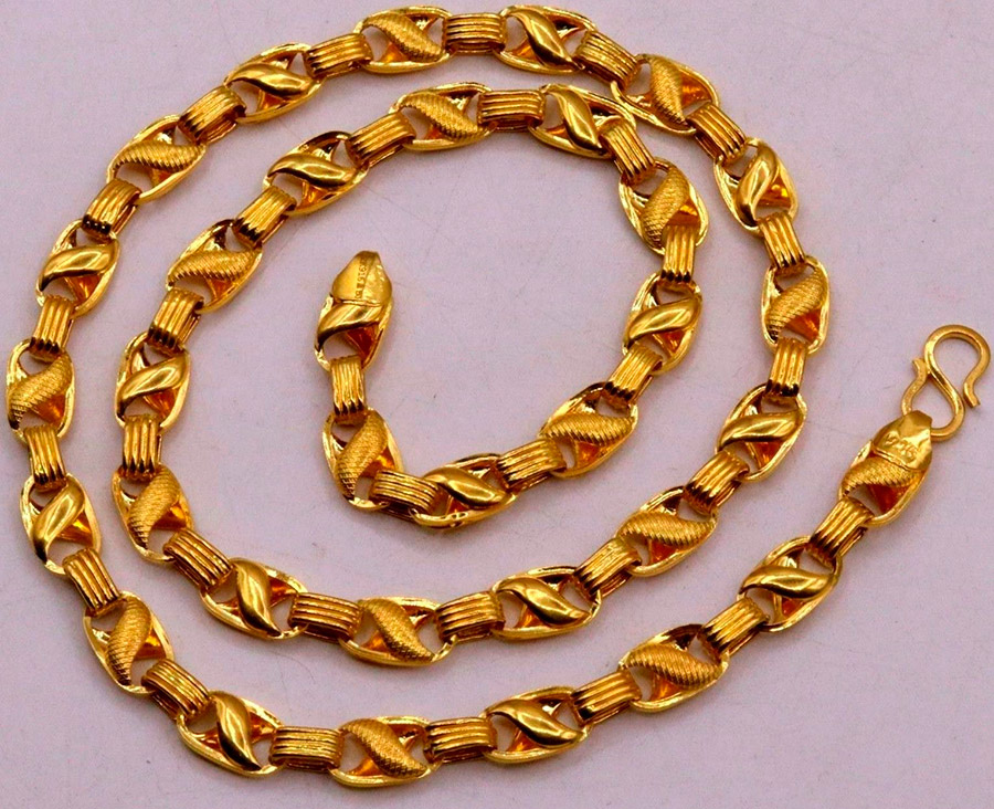 Pour les chaînes pour hommes, on utilise de l'or, de l'argent, de l'acier et, dans de rares cas, du platine. Les chaînes en or soulignent le statut du propriétaire, démontrent le succès. Il peut y avoir des chaînes en or multicolores. Cela n'a tout simplement aucun sens d'acheter des chaînes en or trop lourdes et épaisses si vous n'êtes pas un représentant brillant des professions créatives.
