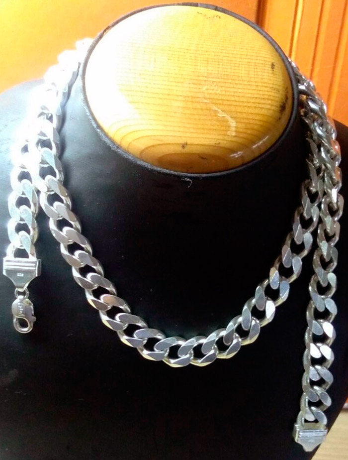Chaînes en argent. Si une épaisse chaîne en or peut provoquer des associations douteuses, alors c'est plus facile avec de l'argent. Les chaînes en argent n'étaient pas populaires auprès des taureaux des années 90. C'est peut-être pourquoi, même à ce jour, les chaînes en argent sont prioritaires sur les chaînes en or massives.