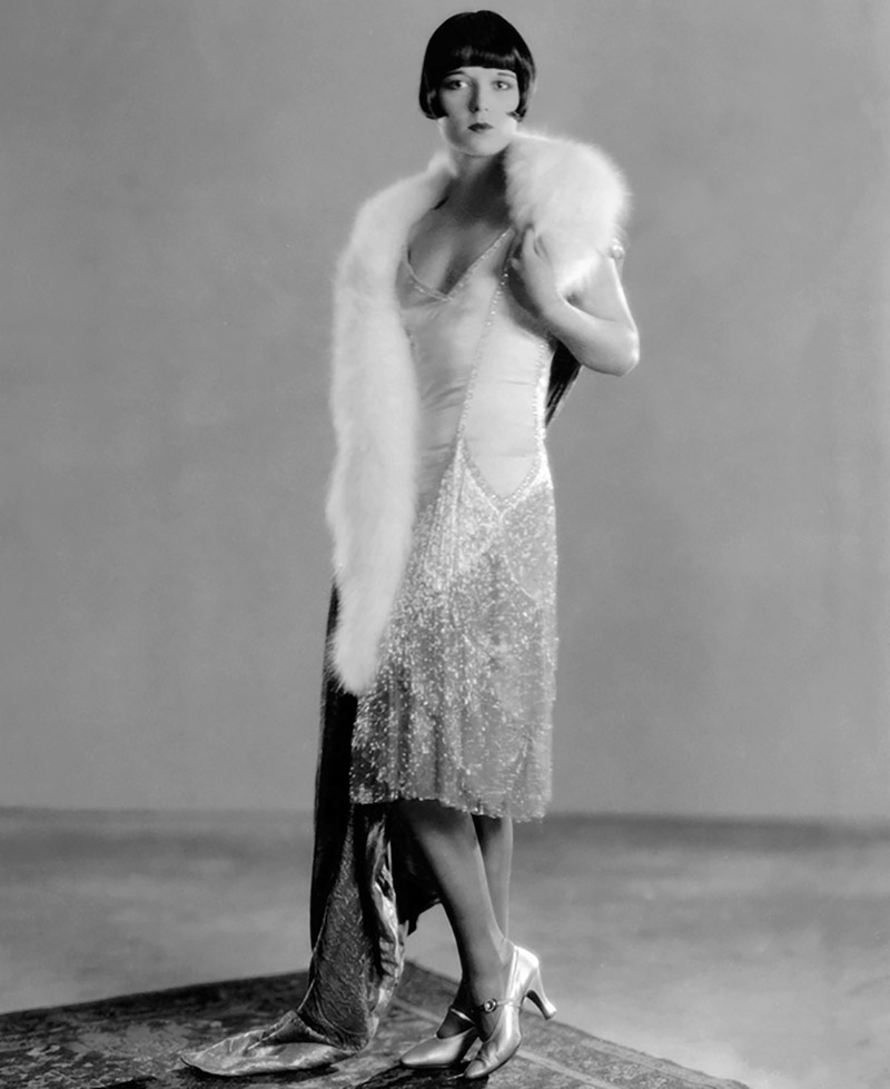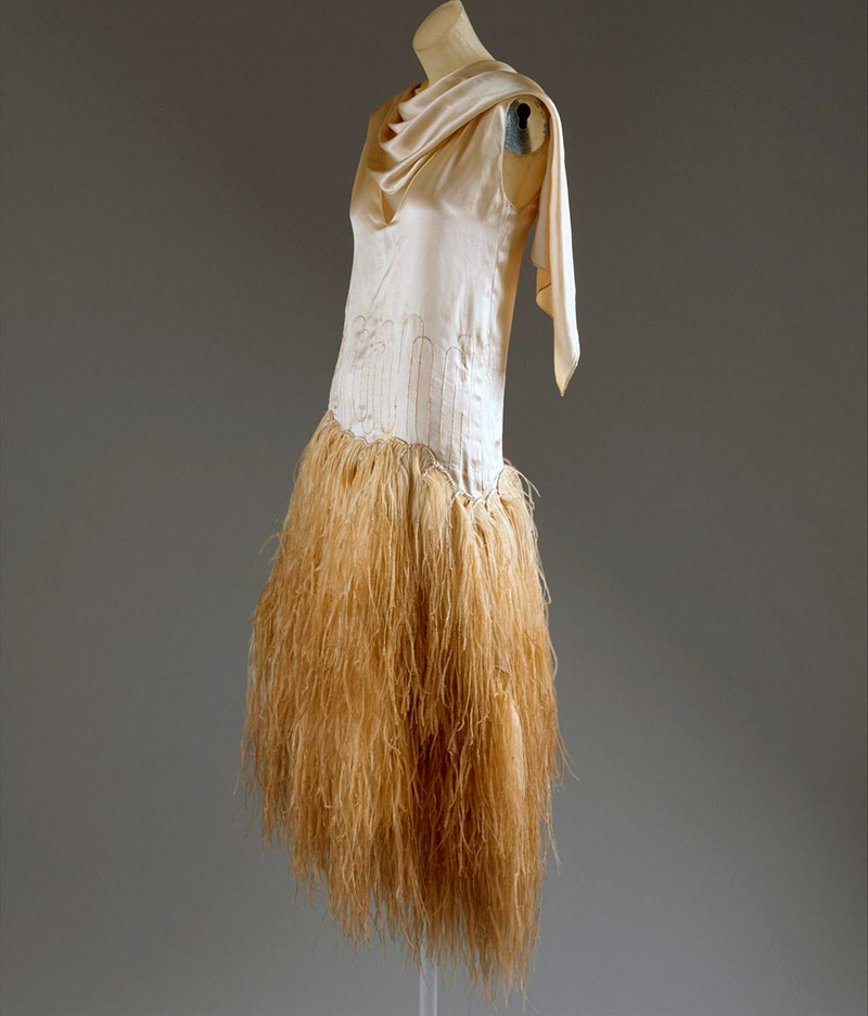 Au début des années 1920, les robes du soir étaient encore des robes longues, sans manches, froncées à la taille, aux hanches ou au dos, légèrement rétrécies vers le bas. Au milieu des années 20, les robes du soir n'étaient déjà que courtes. Pour une petite robe, des tissus transparents ont été utilisés, décorés de clairons et de perles, de franges de soie et de plumes. Le décolleté à la fois à l'arrière et à l'avant atteint presque jusqu'à la taille. Les robes étaient cousues à partir de soie chinoise ou de velours de panne, le décor avait l'éclat et l'éclat des clairons, des perles, des perles.