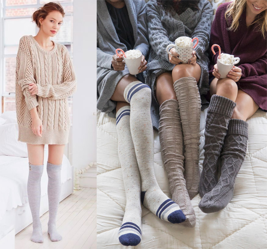 Pour celles qui ont froid, les chaussettes, collants et mi-bas sont des accessoires indispensables. Ils sont très attrayants avec des robes courtes, des shorts et des jupes.