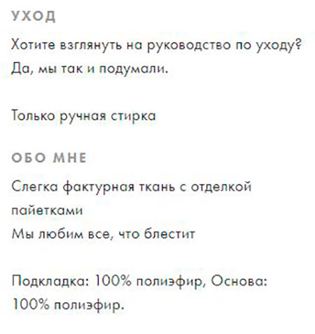 Si vous trouvez une chose qui vous intéresse, examinez-la attentivement sur les photographies. N'ayez pas peur que les photos soient retouchées. En règle générale, les magasins en ligne n'ont pas le temps pour cela, car ils doivent filmer et télécharger une grande quantité d'informations le plus rapidement possible. Sur certains sites, en plus des photos, il y a une vidéo du défilé de mode. Ne soyez pas trop paresseux pour le regarder. Cela vous donnera une meilleure compréhension de la façon dont la chose se trouve.