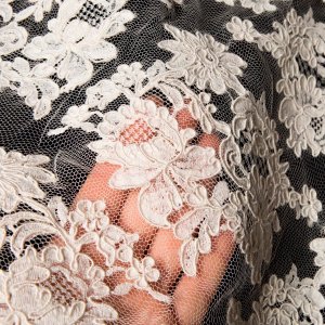 La dentelle de Chantilly française ("Chantilly" en français - "Chantilly") est la plus fine des dentelles aérées. On l'appelle souvent dentelle aérienne car elle est si fine et délicate et est utilisée pour des vêtements élégants en tant que matériau ou décoration de produits.