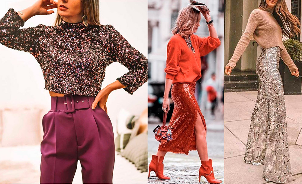 Les paillettes peuvent être portées non seulement en vacances. L'essentiel est de les "calmer" avec un simple haut ou bas, et vous pouvez aller en toute sécurité à une réunion avec des amis, à un rendez-vous ou au théâtre.