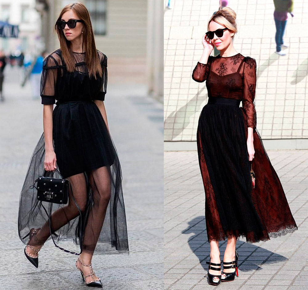 Une belle tendance féminine qu'il est important de présenter correctement. Un chemisier ou un haut transparent peut être porté comme première couche, comme dans le paragraphe précédent. Ou portez un sous-vêtement laconique approprié ou un haut à bretelles de couleur, l'image deviendra alors plus nette.
