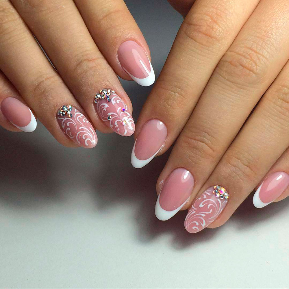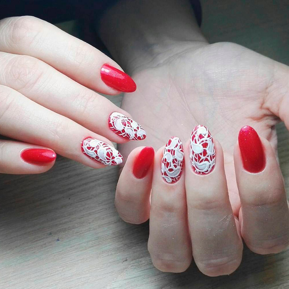 Pourquoi de la dentelle ? Tout d'abord, c'est beau et romantique. Deuxièmement, un homme l'aimera certainement : rien de provocant, très soigné et élégant. Eh bien, troisièmement, les rendez-vous réussis ont tendance à se terminer dans la chambre. Ici, vous pouvez montrer non seulement de la belle lingerie en dentelle, qui, nous en sommes sûrs, a été approvisionnée à l'avance pour la Saint-Valentin, mais aussi une manucure en dentelle qui correspond à cette lingerie.