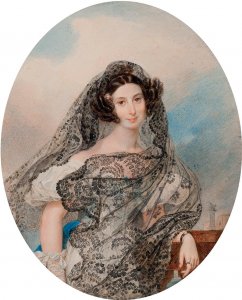 Cependant, au 19ème siècle, on s'attendait à ce que la Mantilla ait encore plus de succès. La reine Isabelle II d'Espagne (1833-1868) aimait beaucoup la mantille et la portait souvent. Les dames de la cour ont rapidement réagi à l'accessoire de mode et la mantille est entrée dans le costume traditionnel des femmes espagnoles. De nombreux artistes ont laissé des portraits féminins en mantille à leurs descendants. Dans de magnifiques capes de dentelle, on peut voir des femmes de toutes les classes dans les portraits des XVIIIe - XIXe siècles. L'artiste espagnol Francisco Goya.