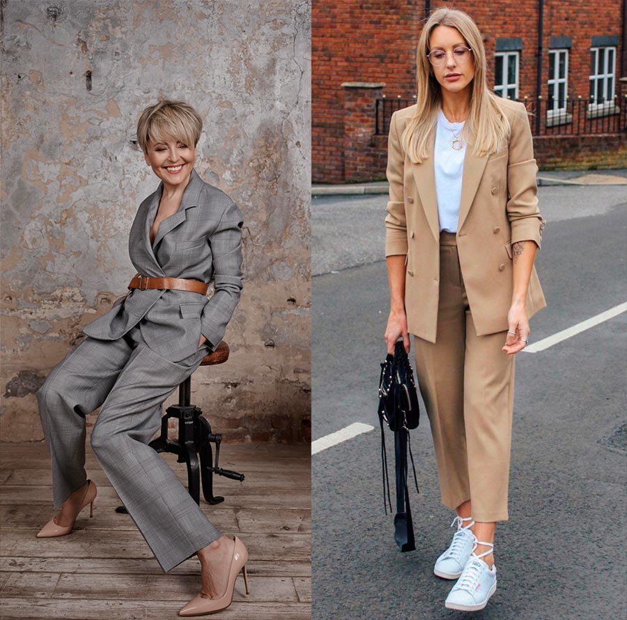 Le tailleur-pantalon classique de bonne qualité. Décoration simple, pas inutile. Il deviendra l'article le plus polyvalent de votre garde-robe et justifiera pleinement votre investissement. C'est comme une fondation sur laquelle il vaut mieux ne pas économiser. Un grand nombre d'images peuvent être complétées avec. Envie de baskets et d'un tee-shirt blanc, d'un chemisier en soie et d'escarpins ou d'un col roulé et de bottines. Il peut également être "cassé" et porté pour chaque élément (bas et haut) séparément. Et il peut y avoir un nombre infini de variantes des kits.