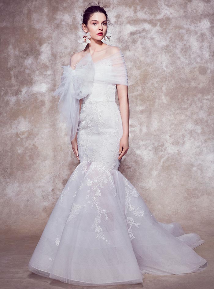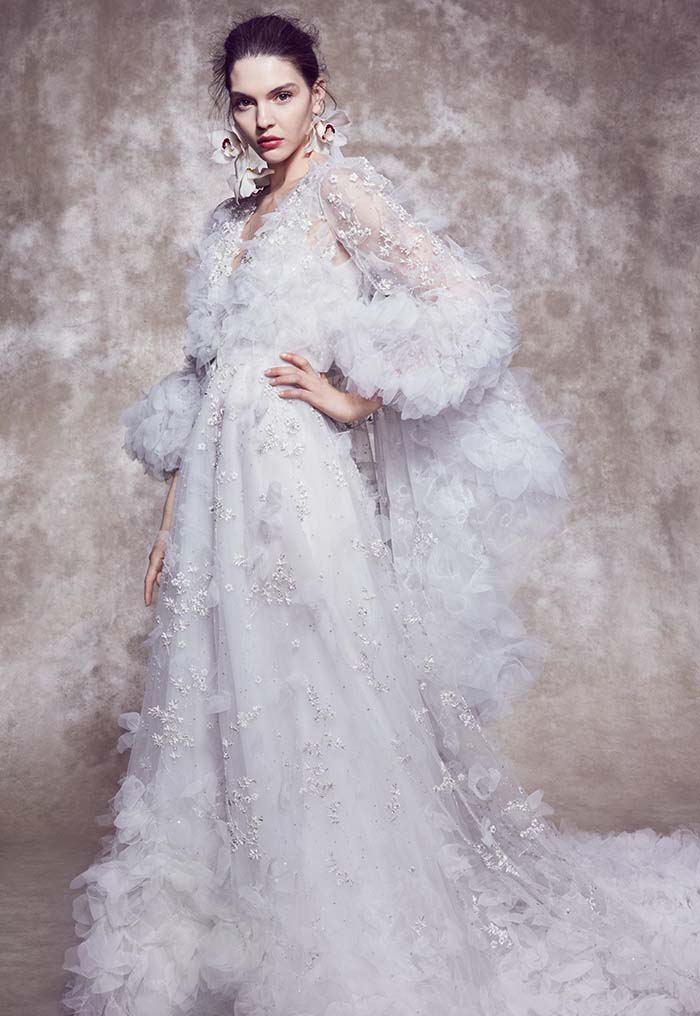 - En plus des robes elles-mêmes, vous pouvez acheter des éléments individuels chez Marchesa, et ce n'est pas seulement un voile chic avec une broderie exquise qui transformera la mariée en une nymphe fantastique. Vous pouvez compléter la robe avec des manches qui ouvrent les épaules, des volants supplémentaires et d'autres éléments. Marchesa invite les mariées à créer le look de mariage parfait afin qu'elles puissent montrer leur meilleur.