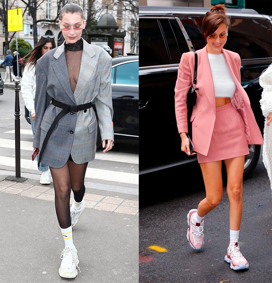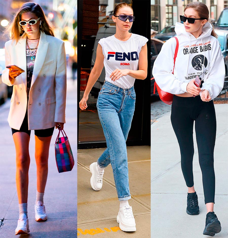 Eh bien, si vous n'êtes pas obligé de porter un survêtement, vous pouvez au moins porter des chaussures de sport. Et cela vaut la peine de combiner des baskets et des baskets non seulement avec des vêtements décontractés, mais aussi avec des vêtements de travail élégants et des robes romantiques, avec des manteaux, des vestes et des tailleurs pantalons. Oui, en général, avec n'importe quoi : aujourd'hui, les chaussures de sport conviennent partout et toujours. Voyez comment Gigi et Bella Hadid le font avec succès et de manière organique dans la vie de tous les jours.