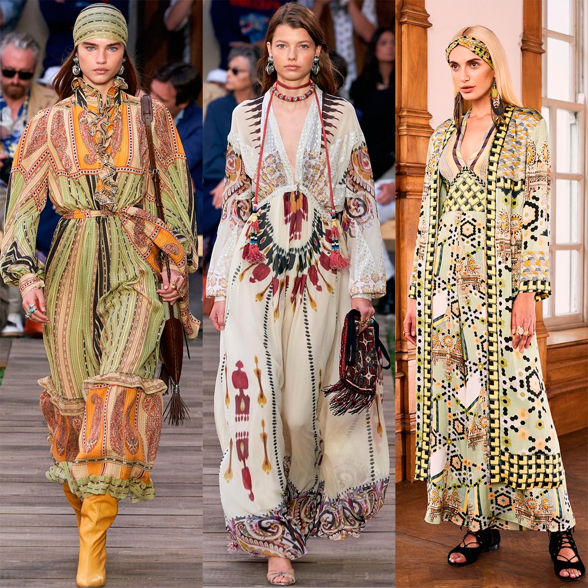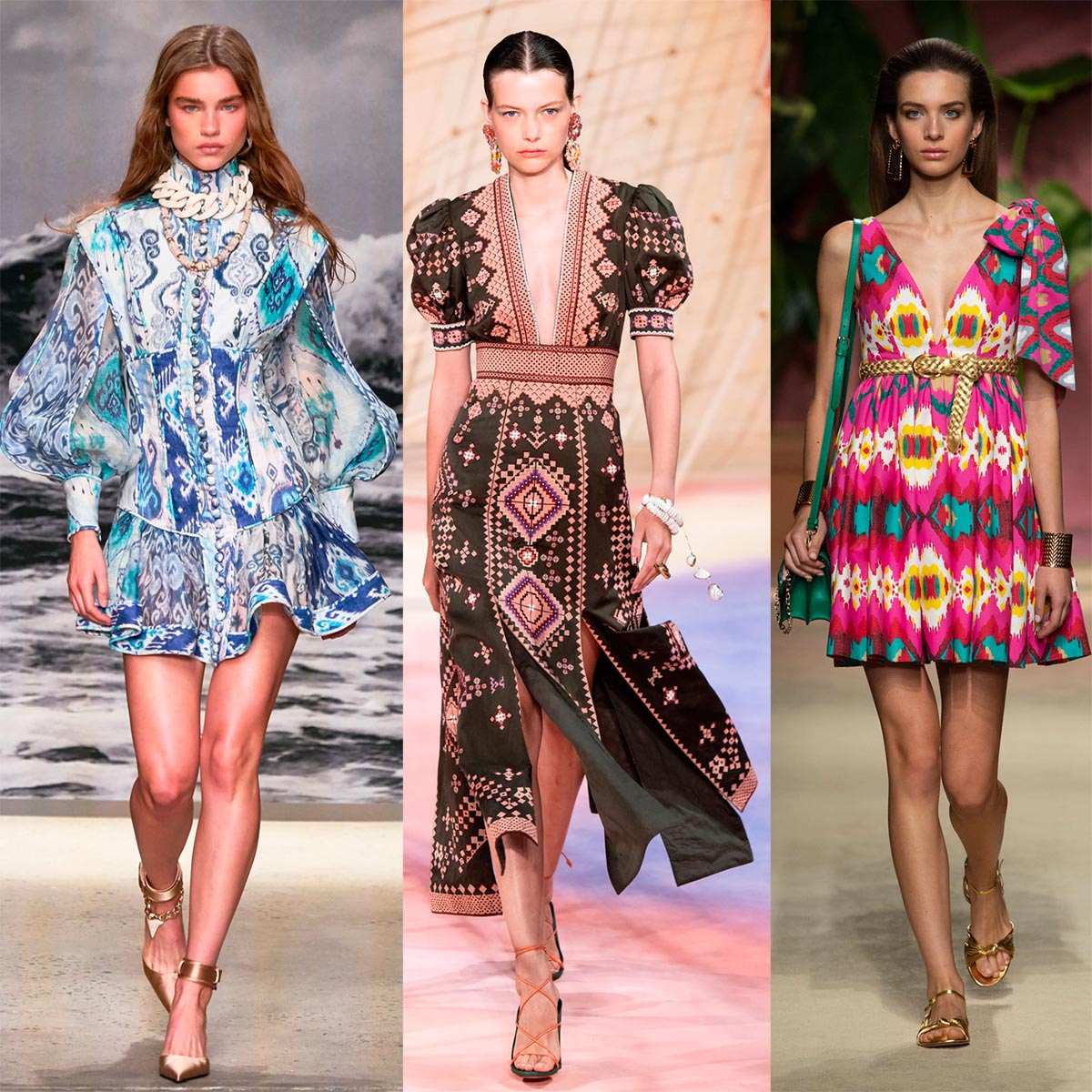 Restent les imprimés ethniques, qui ornent le plus souvent des tenues de style folk et proche de celui-ci dans l'esprit.