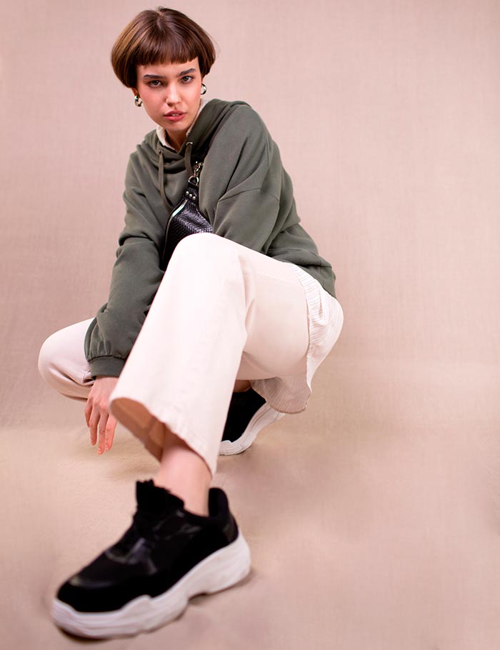 Les créateurs de la marque ont élargi la gamme de vêtements d'extérieur et présenté des trenchs et des imperméables en dessous du genou, des bombers et des coupe-vent dans différentes teintes. La collection contient tous les vêtements streetwear printaniers les plus pertinents : un trench-coat en coton beige classique se combinera parfaitement avec un jean Loose Straight et des baskets épaisses blanches, et un imperméable kaki avec une jupe à imprimé animal et un t-shirt.