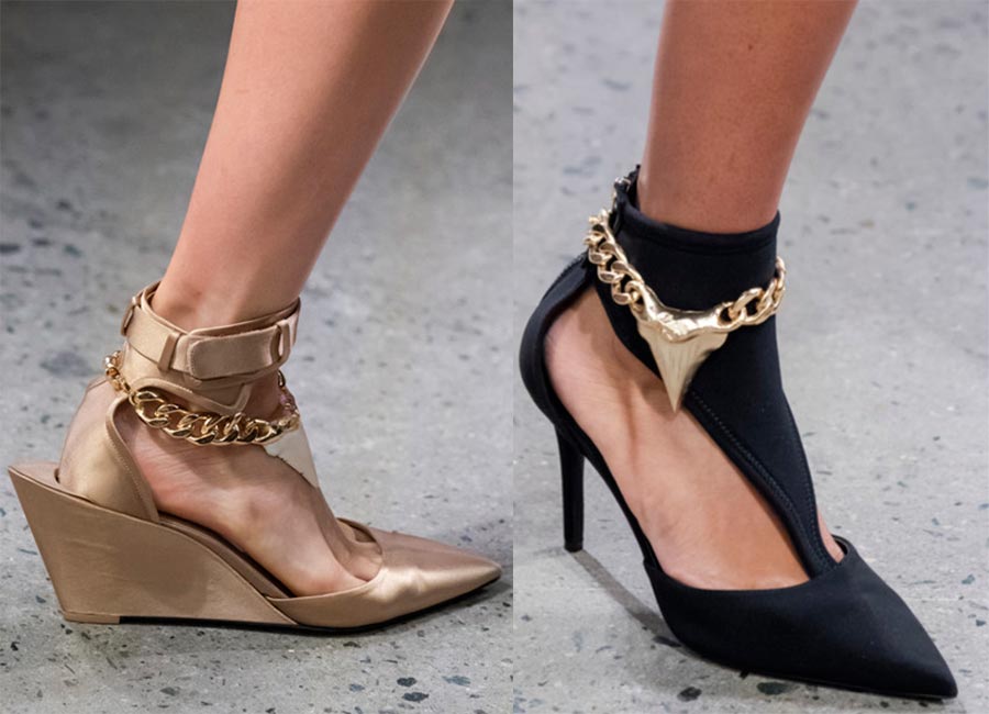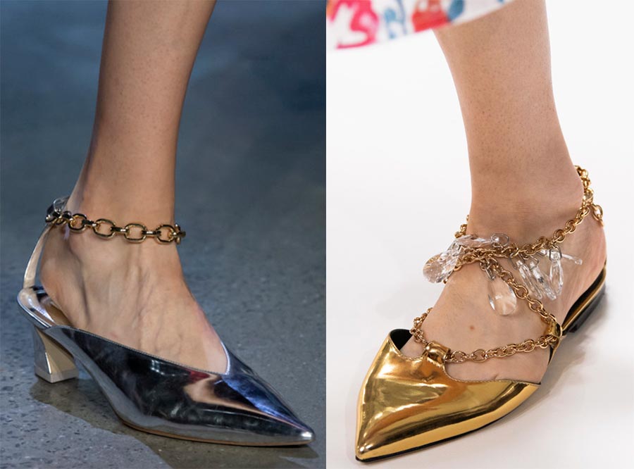 Cette saison, les créateurs ont orné les chaussures de toutes sortes de chaînes. Ainsi, Zimmermann a pacifié les chaussures féminines avec une chaîne massive, JW Anderson a donné encore plus d'élégance aux chaussures en or, en les décorant d'une chaîne avec des pierres translucides, et Prabal Gurung a remplacé la bride de cheville par une chaîne.