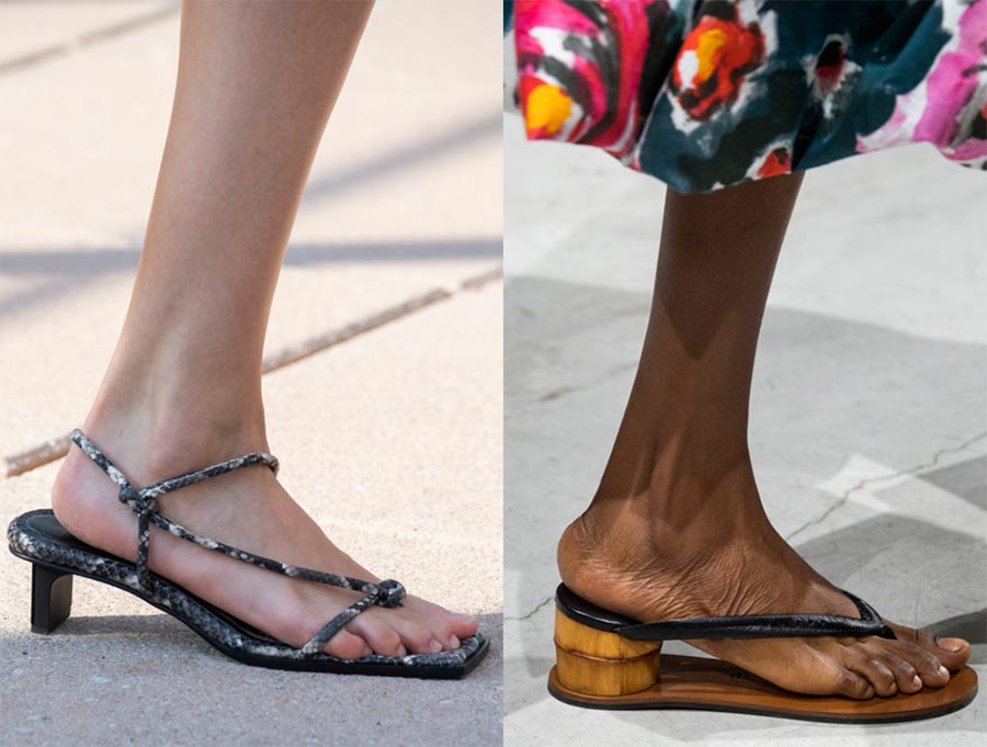 L'année dernière, les tongs ont commencé à apparaître sur les podiums, cette année cette tendance a été interceptée par de nombreux créateurs, présentant toutes sortes de tongs sur les podiums - plates, à talons, en forme de mules, sandales, sandales. Des chaussures avec un pont entre les orteils ont été trouvées dans les collections de Marni, Rejina Pyo, A.W.A.K.E., Givenchy.
