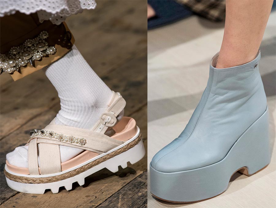La plate-forme de cette saison a couvert toute la variété de types de chaussures. Ainsi, Simone Rocha nous invite à porter une plateforme en paille, Tibi - des chaussures à talon ouvert, Fendi - des tongs.