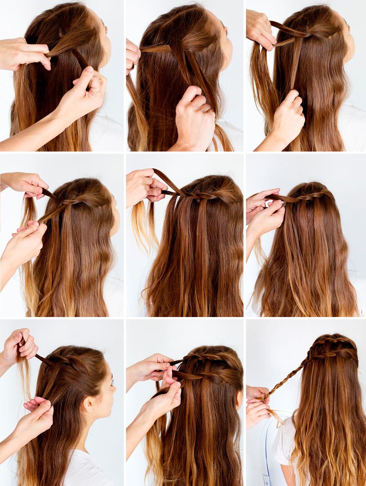 Vous devez tisser une tresse en prenant des mèches dans la masse des cheveux et en libérant les plus basses. Si vous essayez de choisir des brins de même épaisseur, cette technique créera vraiment l'effet d'un écoulement d'eau ou d'une cascade.