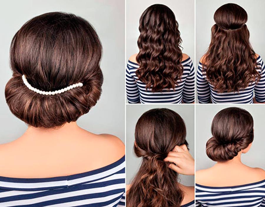 Pour ce faire, vous devez utiliser un insert spécial, le "beignet" pour le faisceau. Faites la queue, haute ou mi-nuque, ou basse, fixez-la avec un élastique. Glissez le beignet sur la queue de cheval et bouclez les cheveux vers l'intérieur en faisant défiler la doublure.
