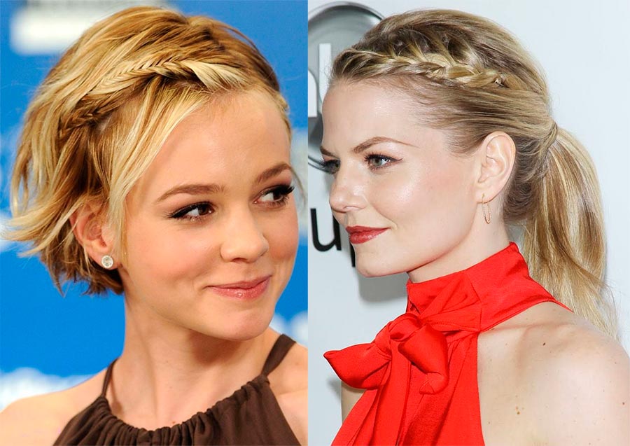 1. Tresse pour frangeSi votre frange est assez longue pour être tressée, utilisez-la. C'est beau et romantique, et la tresse elle-même remplacera la lunette - c'est pratique et efficace. Plus vos cheveux sont courts, mieux c'est de commencer à tresser avant qu'ils ne soient complètement secs.