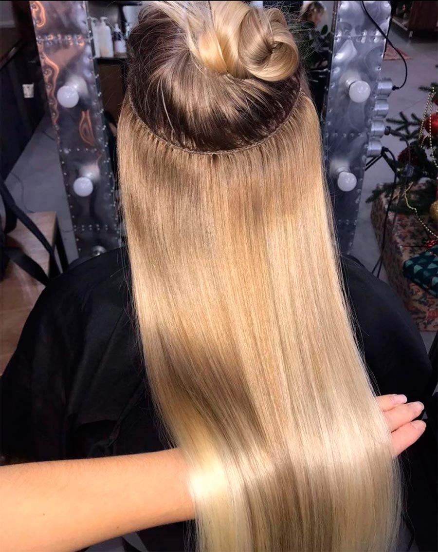 Idéal : construire des mèches avec un maître styliste, en utilisant la méthode d'extension à chaud à l'aide de capsules de cire. Mais cette procédure est très longue, coûteuse et très fastidieuse.Si vous ne souhaitez pas changer radicalement et pendant longtemps, vous pouvez essayer l'accumulation dite "à froid".