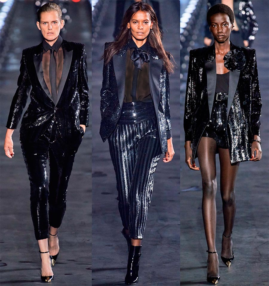 Et impossible d'imaginer la garde-robe d'une fashionista glamour sans un costume de la marque Saint Laurent. Ce sont ces costumes qui ont l'air les plus luxueux.