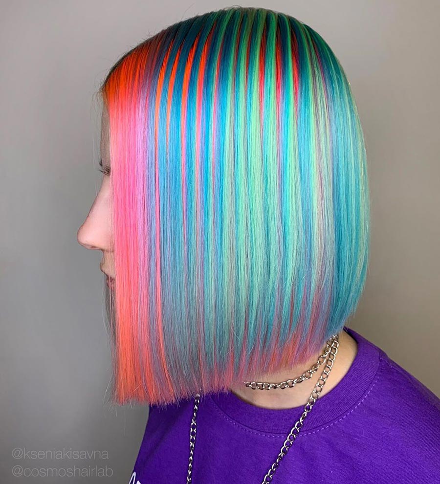 Effet opale reste à la mode. Et la coloration arc-en-ciel gagne également en popularité.De telles couleurs peuvent créer une image surnaturelle très futuriste, mais seule une artisane habile peut les rendre vraiment belles et élégantes, sinon vous pouvez obtenir la couleur d'une fille informelle bon marché - une écolière qui a été peinte par un ami.
