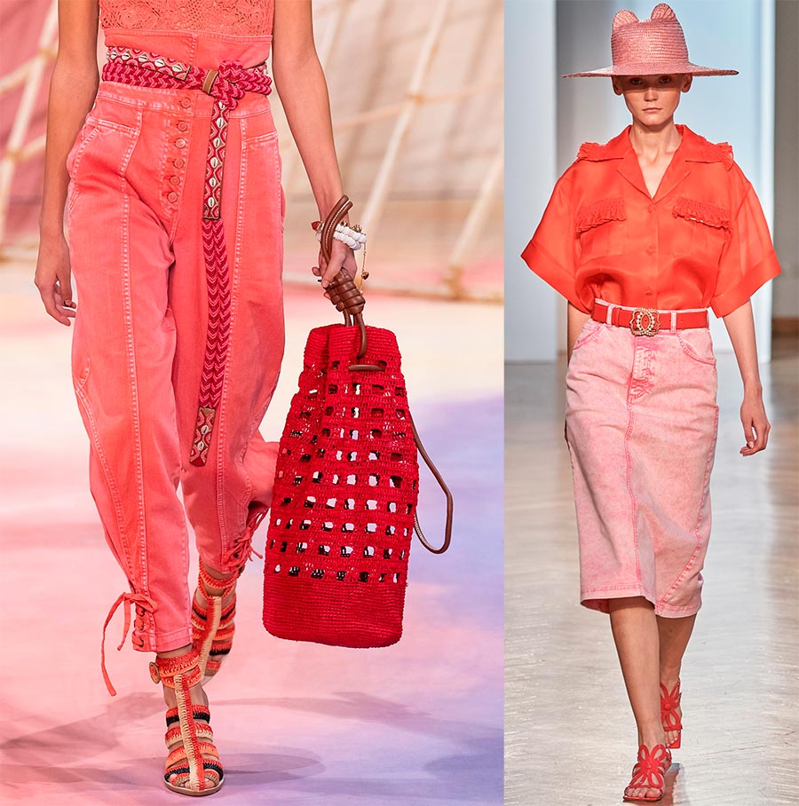 Choisissez une couleur audacieuse qui vous convient et associez-la à des ajouts tout aussi audacieux, comme un jean corail Ulla Johnson ou une jupe Vivetta rose. Cependant, n'oubliez pas le blanc, qui est très populaire dans la nouvelle saison.