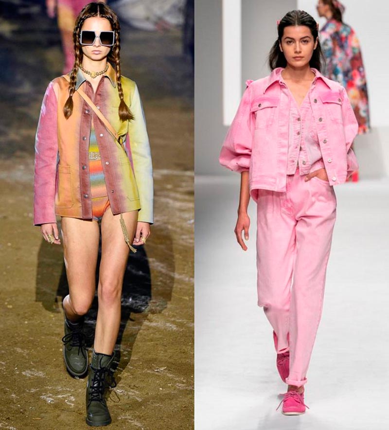La longueur doit également être choisie courte ou jusqu'au milieu de la cuisse. Les parkas longues et les vestes en jean restent une dernière saison. La couleur du denim peut être très différente : claire, foncée ou même colorée, avec des imprimés ou des rayures, des motifs et des décorations - selon votre humeur. Nous avons vu une abondance de vêtements d'extérieur en denim pour le printemps chez Priscavera, Celine, Isabel Marant, Versace, Philosophy Di Lorenzo Serafini, Alberta Ferretti, Chanel, Christian Dior, Laura Biagiotti.