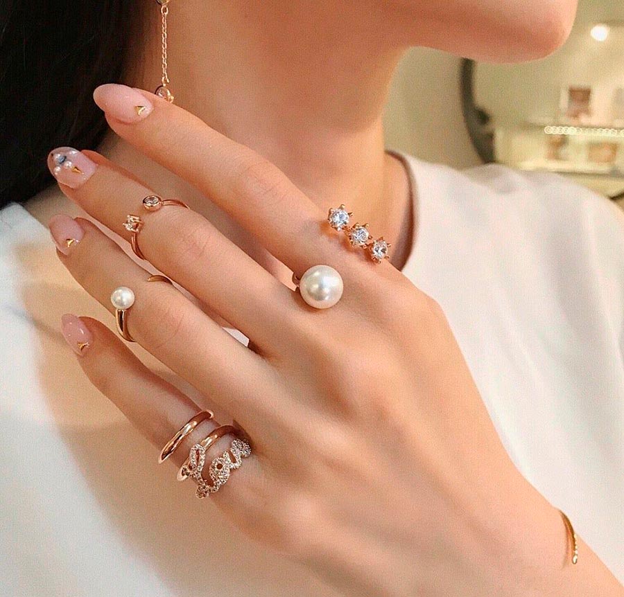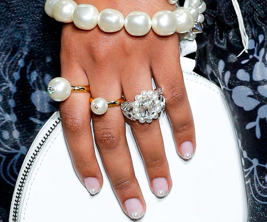 Bagues avec perles et émailC'est l'une des options les plus belles et les plus féminines pour les bagues de mode pour femmes. Les perles sont généralement hors compétition pour la saison printemps-été 2026 - les strass étincelants lui ont fait place. Il peut être présent sur des bagues sous forme de grosses perles individuelles ou parsemer des bagues massives de petites perles.