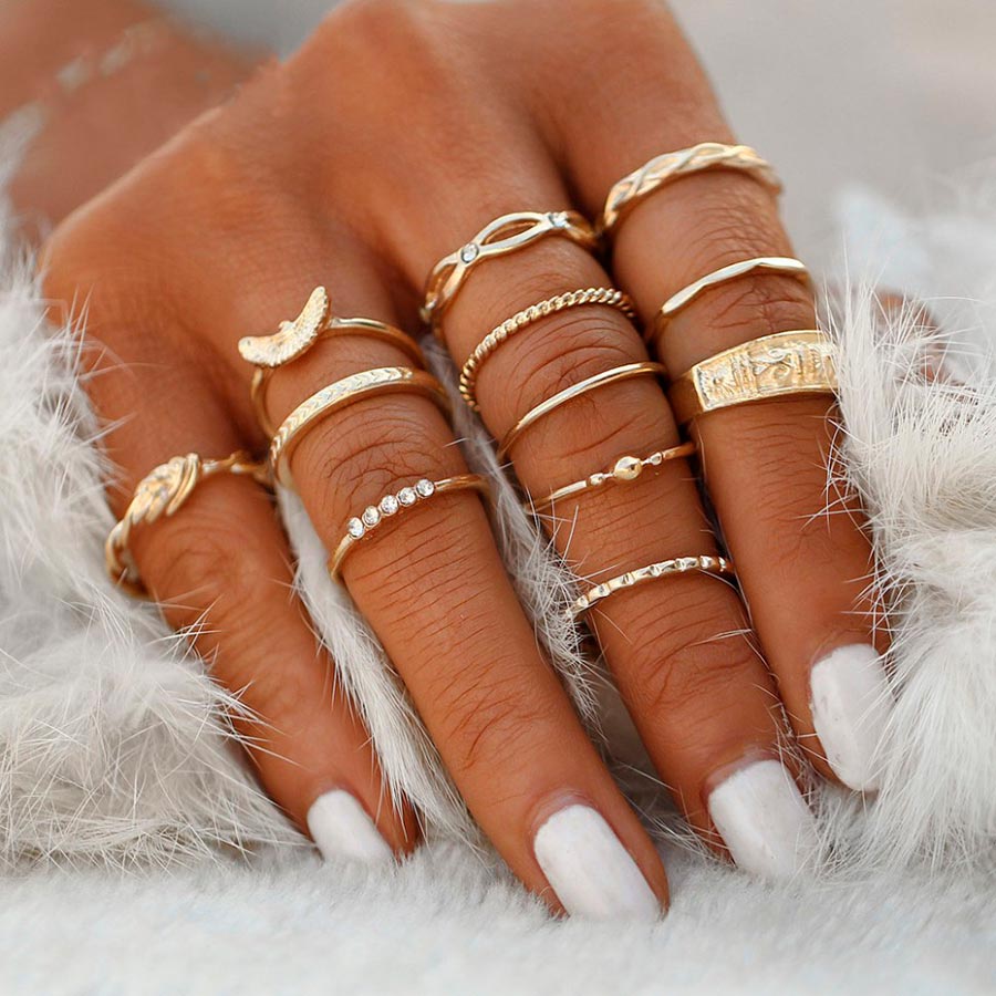 Anneaux pour différentes phalanges des doigtsEt en 2026, les bagues n'ont pas à être portées à la base même du doigt. Cela peut être fait sur différentes phalanges, et ça a l'air incroyablement élégant ! L'essentiel est de choisir des bagues à peu près du même design. C'est-à-dire que s'il s'agit d'or jaune, que tous les anneaux des différentes phalanges et des deux mains soient en or jaune. S'il s'agit de pierres blanches ou de perles, que tout soit avec des pierres ou des perles, respectivement. Les anneaux minces et les variantes de formes géométriques ont le plus de succès sur différentes phalanges des doigts.