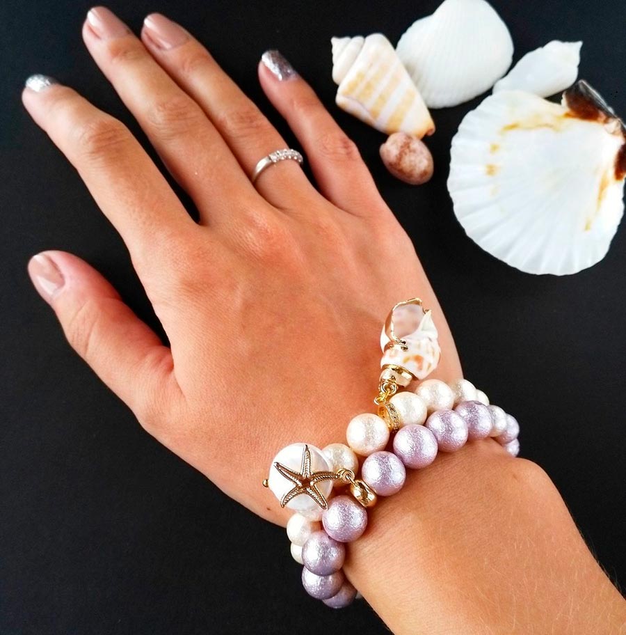 Bracelets avec coquillages et perlesEt encore, les perles, ce n'est pas surprenant : elles ont vraiment conquis le cœur des créateurs de vêtements et de bijoux. On le voit sur les boucles d'oreilles, les bagues et les colliers. En ce qui concerne les bracelets, les grosses perles rondes ont fière allure ici, ainsi que les pendentifs en perles sur une chaîne ou un bracelet dans le style Pandora.