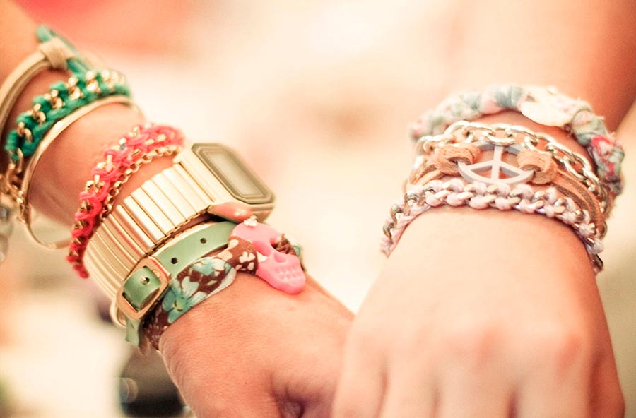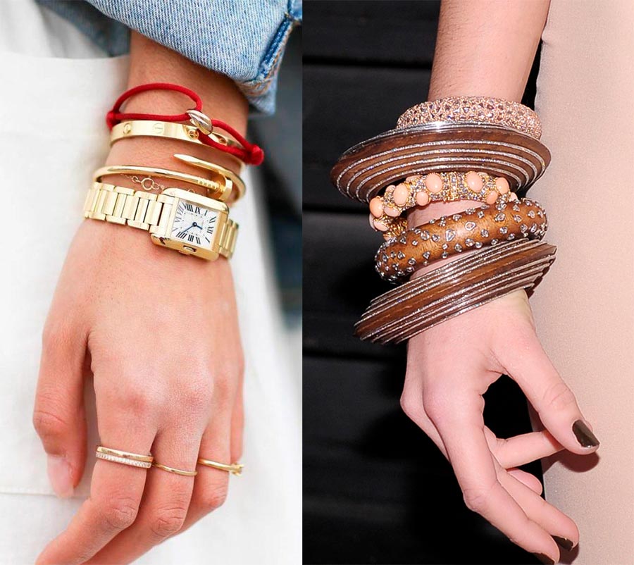 Abondance de braceletsComme nous l'avons dit en un mot, plus il y a de bracelets, mieux c'est. Certains créateurs, par exemple Jeremy Scott (pour Moschino) suggèrent de porter 5 bracelets ou plus sur une main en même temps. Et si les deux poignets en sont décorés, ce sera complètement chic !