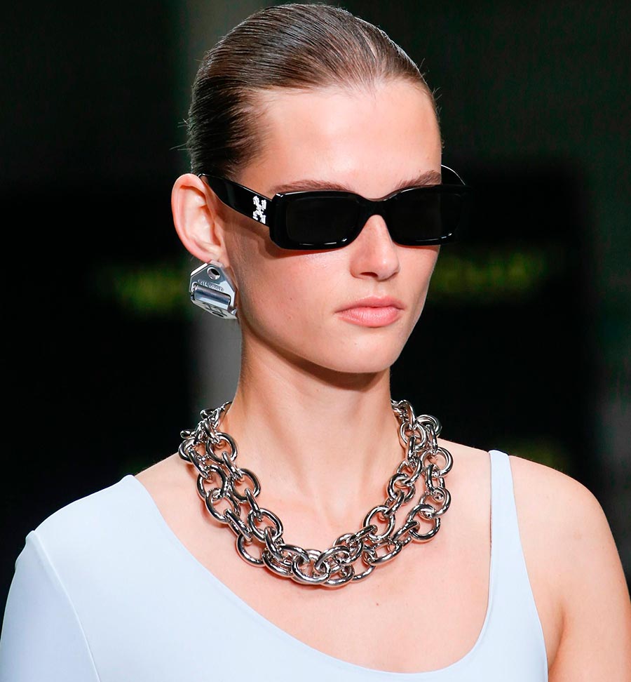 Chaînes massivesLes grosses chaînes autour du cou étaient déjà à la mode l'année dernière. Mais bon, ils sont devenus encore plus gros, plus massifs, plus longs et plus épais ! De telles options sont un peu comme les bijoux traditionnels des "nouveaux Russes" ou des souteneurs de New York. Mais n'ayez pas peur d'avoir l'air vulgaire : les grosses chaînes à gros maillons se marient bien avec des vêtements décontractés élégants, des jeans et des tuniques amples. On voit de telles images chez Zimmermann, Bottega Veneta, Brandon Maxwell, Alexander McQueen, Pyer Moss, Christian Dior.