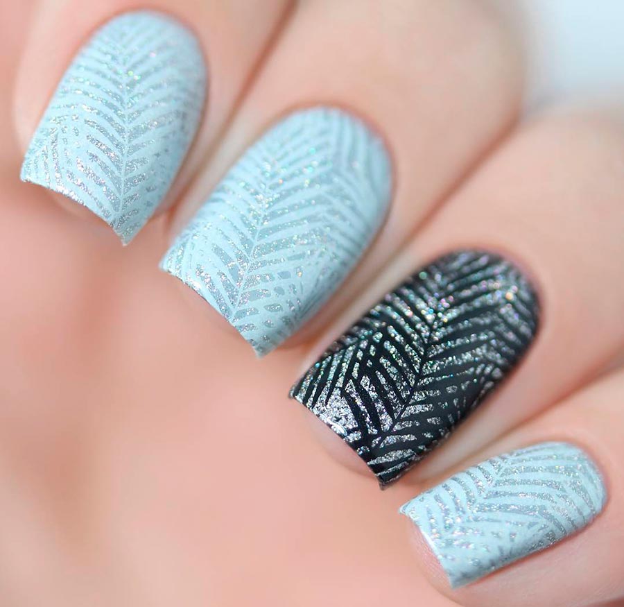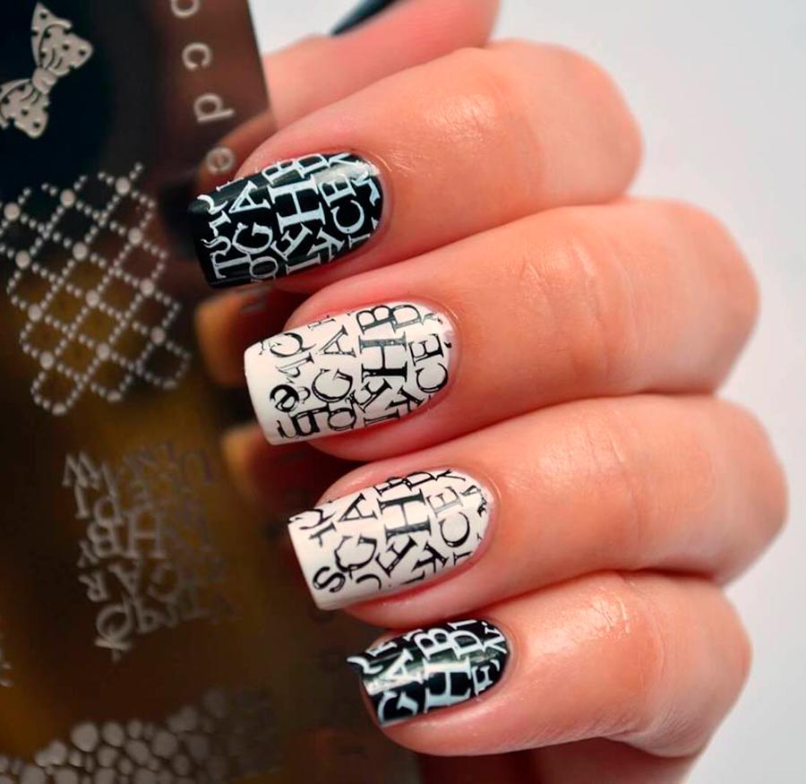 C'est une vraie trouvaille pour les ongles courts ! Vous pouvez également appliquer le tamponnage à la maison, vous n'avez pas besoin de formation particulière pour cela. En fait, il s'agit d'un gaufrage sur l'ongle, un tampon (du tampon anglais). Et s'il n'y a aucun moyen d'"accélérer" en termes de dessin avec un pinceau sur une plaque à ongles courte, alors en tamponnant différents motifs, vous pouvez créer un design magnifique et varié !