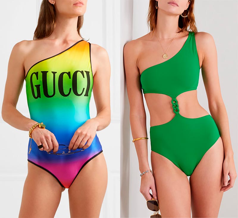 Les maillots de bain une épaule et une pièce avec un corsage à une épaule sont une tendance lumineuse que l'on retrouve chez de nombreux créateurs. La coupe asymétrique rend le maillot de bain le plus laconique plus intéressant. De tels modèles font partie des collections de Gucci, Balmain, Eres, Cult Gaia, Versace et de nombreuses autres marques.