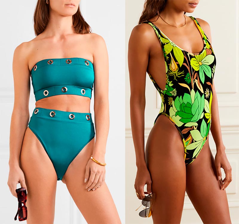 Ces tendances peuvent exister séparément ou ensemble. La coupe haute de la cuisse allonge visuellement les jambes. L'emmanchure profonde ajoute un zeste spécial et laisse plus de corps ouvert au bronzage. Des maillots de bain similaires sont disponibles chez Jacquemus, Fendi, Agent Provocateur, Mara Hoffman et bien d'autres.