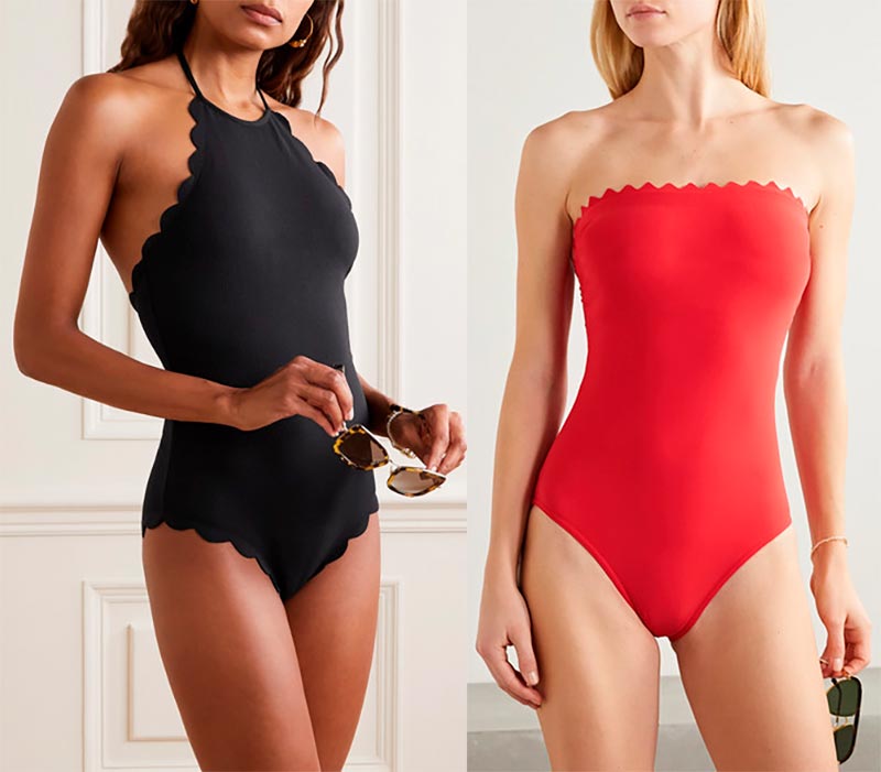 Une autre tendance féminine et romantique. Le bord de ces maillots de bain est généralement découpé au laser pour créer une vague mignonne et légèrement naïve. De tels modèles se trouvent dans les collections de Marysia et Karla Colletto.