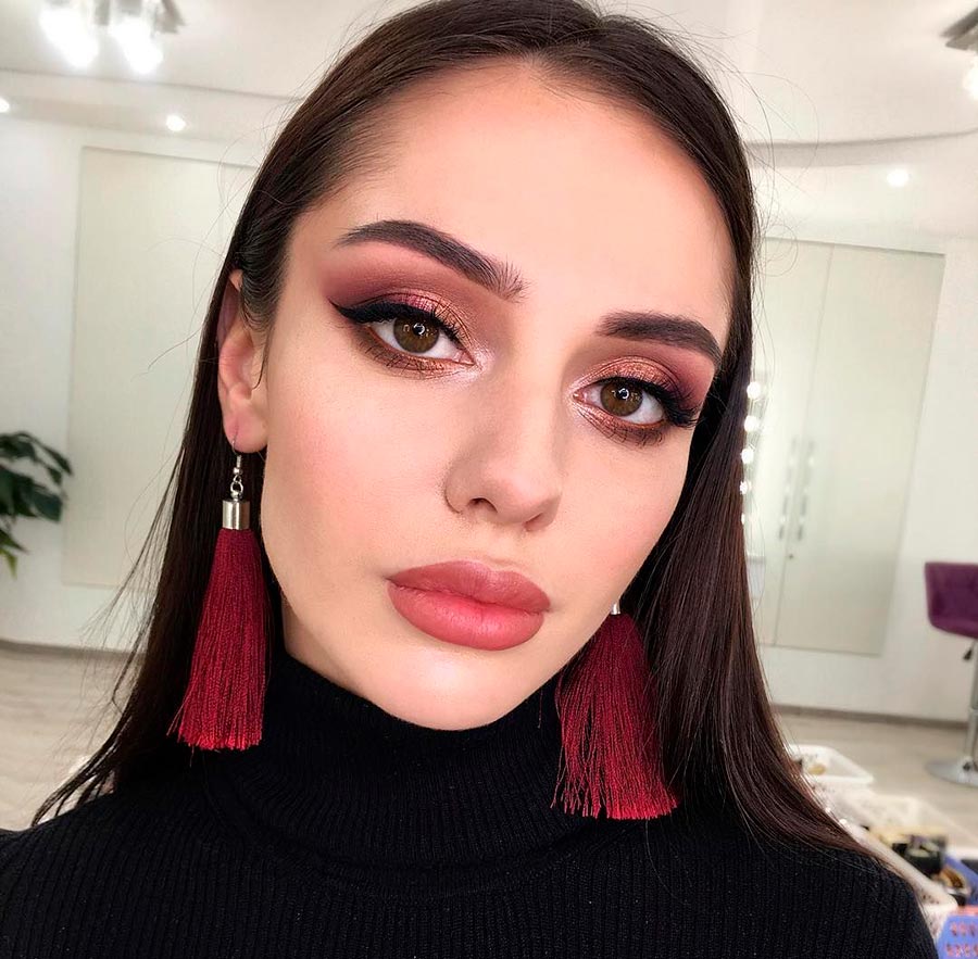 Comment faire?La couleur du rouge à lèvres foncé doit également être sélectionnée en fonction de votre type de couleur. Décidez d'une nuance et utilisez un crayon un demi-ton plus foncé ou assorti au rouge à lèvres (vous n'avez pas besoin d'un ton entier, aujourd'hui il aura l'air théâtral). Tracez vos lèvres autour du contour avec un crayon, estompez-le et appliquez du rouge à lèvres par-dessus. Il est préférable d'utiliser un pinceau pour une application plus précise, et pour que le rouge à lèvres ne s'étale pas.
