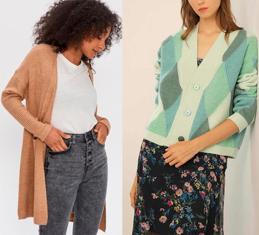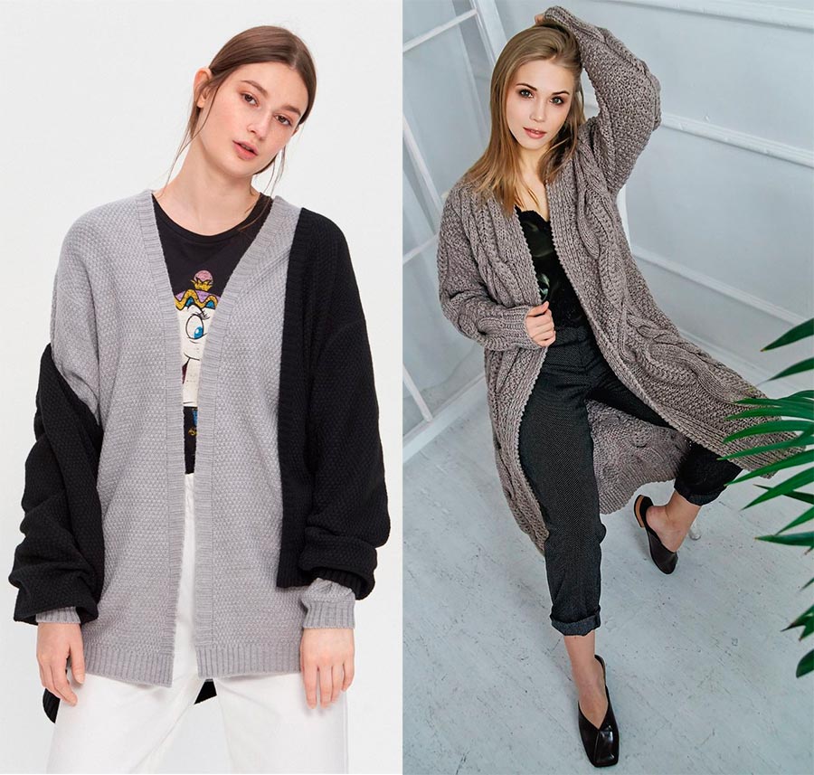 Les cardigans à manches 3/4 ont fière allure - dans ceux-ci, il sera pratique de travailler avec le clavier et la souris, ils n'entravent pas le mouvement des mains depuis le coude. De plus, cette longueur de manche est à la mode en 2026. Vous pouvez choisir des options avec des boutons ou sans attache, uniquement sur une ceinture ou sans aucune. Tricot chaud ou maille fine - choisissez la matière en fonction des "conditions météorologiques" de votre maison.