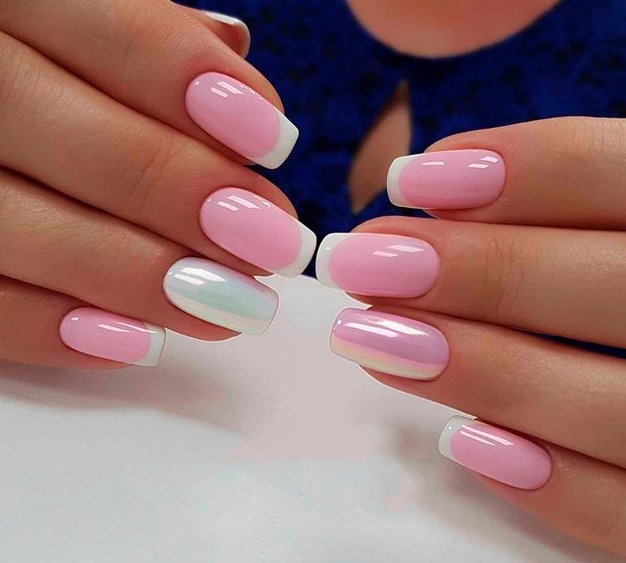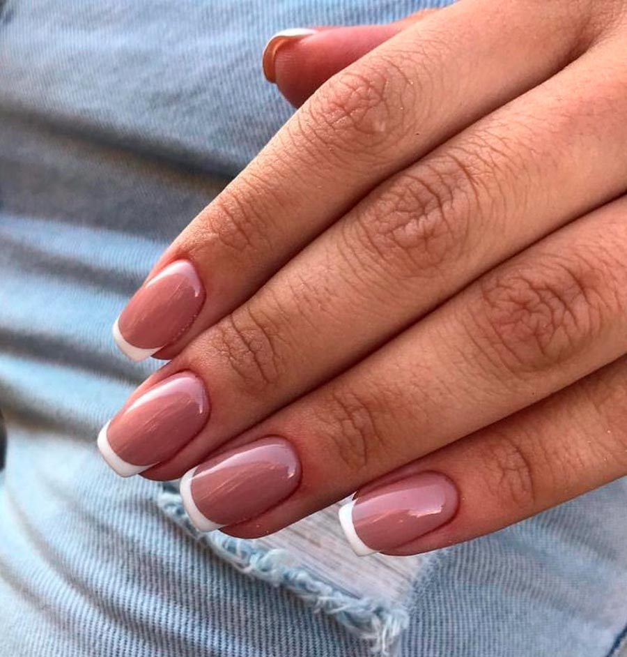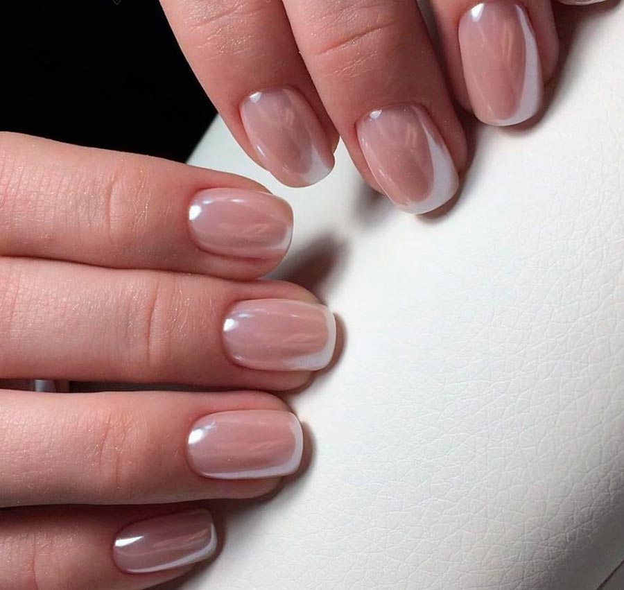 Beaucoup de gens aiment que la veste soit aussi naturelle que possible et préfèrent ne pas du tout recouvrir la plaque à ongles de couleur, ne dessinant qu'un "sourire" blanc. Mais il s'avère que si vous couvrez l'ongle d'une couleur nude, il aura l'air beaucoup plus soigné. Et même en repoussant, il n'y aura pas de transition notable sur l'ongle, donc avec une telle manucure, il sera possible de passer longtemps.