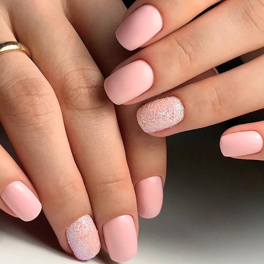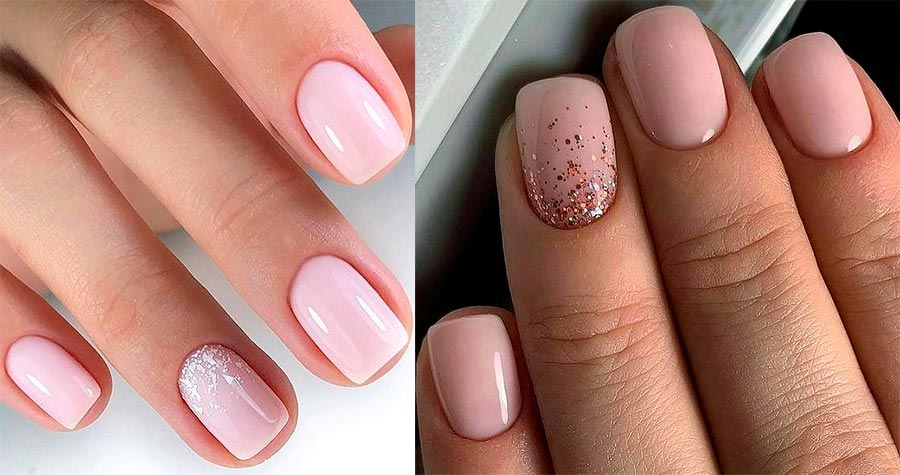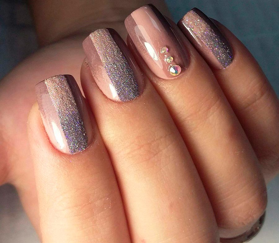 Les strass, les paillettes, les paillettes et les paillettes peuvent également rafraîchir un nude uni. Une telle manucure aura l'air plus festive, elle peut être utilisée pour toute célébration. En même temps, il conviendra chaque jour de rafraîchir le fini mat. Si vous souhaitez un éclat discret, vous pouvez ajouter un petit strass ou une pierre sur chaque ongle, par exemple près de la cuticule.