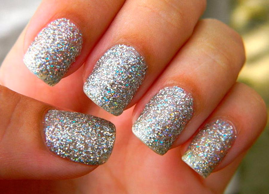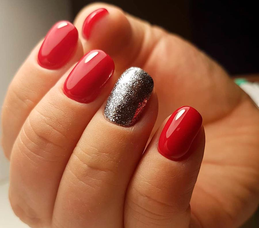 Choisissez de l'argent ou de l'or, et si vous utilisez du vernis coloré pour d'autres ongles, choisissez les paillettes assorties. Les paillettes peuvent être appliquées sur la plaque à ongles pas complètement, mais seulement près de la cuticule ou, au contraire, sur le bout de l'ongle.