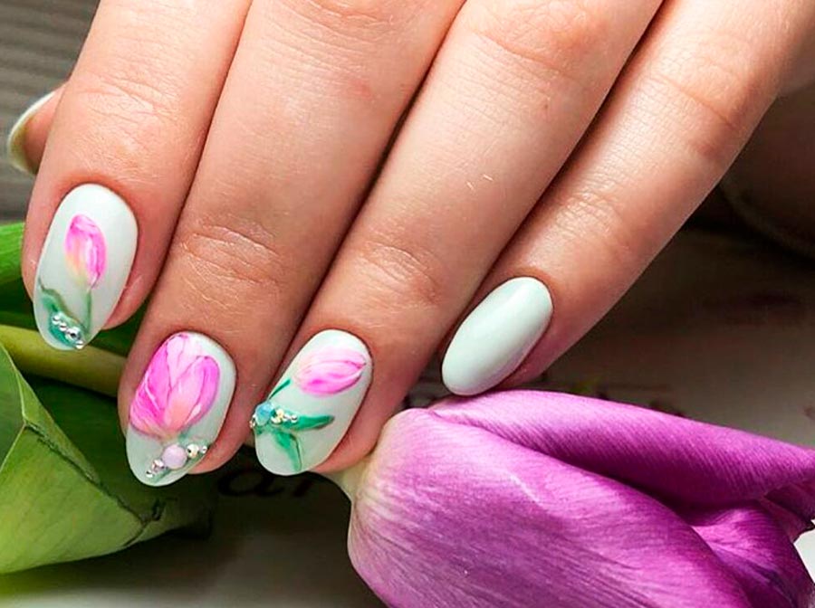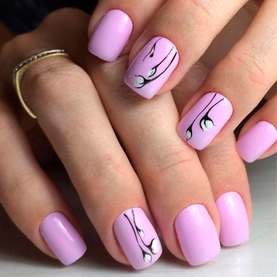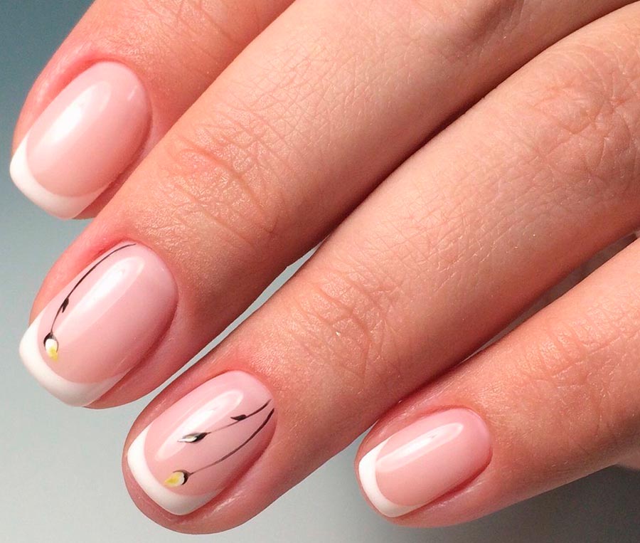 Les dessins de fleurs, brindilles et feuilles en 2026 sont plus populaires que jamais ! Et sur les ongles courts, une telle beauté est également assez réaliste à réaliser. Il n'est pas du tout nécessaire de dessiner une serre entière ou une nature morte, il suffit de tracer un trait fin et de dessiner quelques feuilles dessus - très printanier ! Une fleur stylisée dans n'importe quelle nuance de votre choix ou une feuille de palmier tropical vert vif est parfaite pour les jours d'été. Il existe de nombreuses options pour les dessins floristiques, vous pouvez trouver le plus simple qui sera beau et élégant.