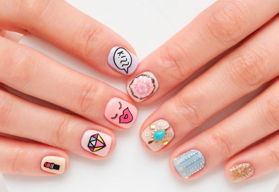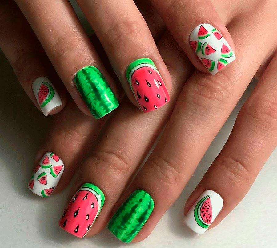 Des dessins brillants et amusants sur les ongles contribueront à ajouter du positif aux jours sombres d'aujourd'hui. Ils peuvent être réalisés même sur les longueurs les plus courtes et même si vous n'êtes pas un artiste très réussi. Prenez n'importe quelle photo sur Internet comme base et redessinez-la pour au moins un ongle. Un ballon, une glace colorée, un cupcake délicat, un cœur ou une inscription, des fruits d'été juteux - tout cela peut être fait facilement et simplement par vous-même avec un pinceau fin ou même un marqueur. N'oubliez pas de couvrir le dessus avec un dessus pour le fixer.