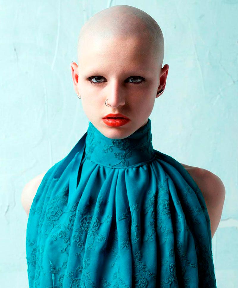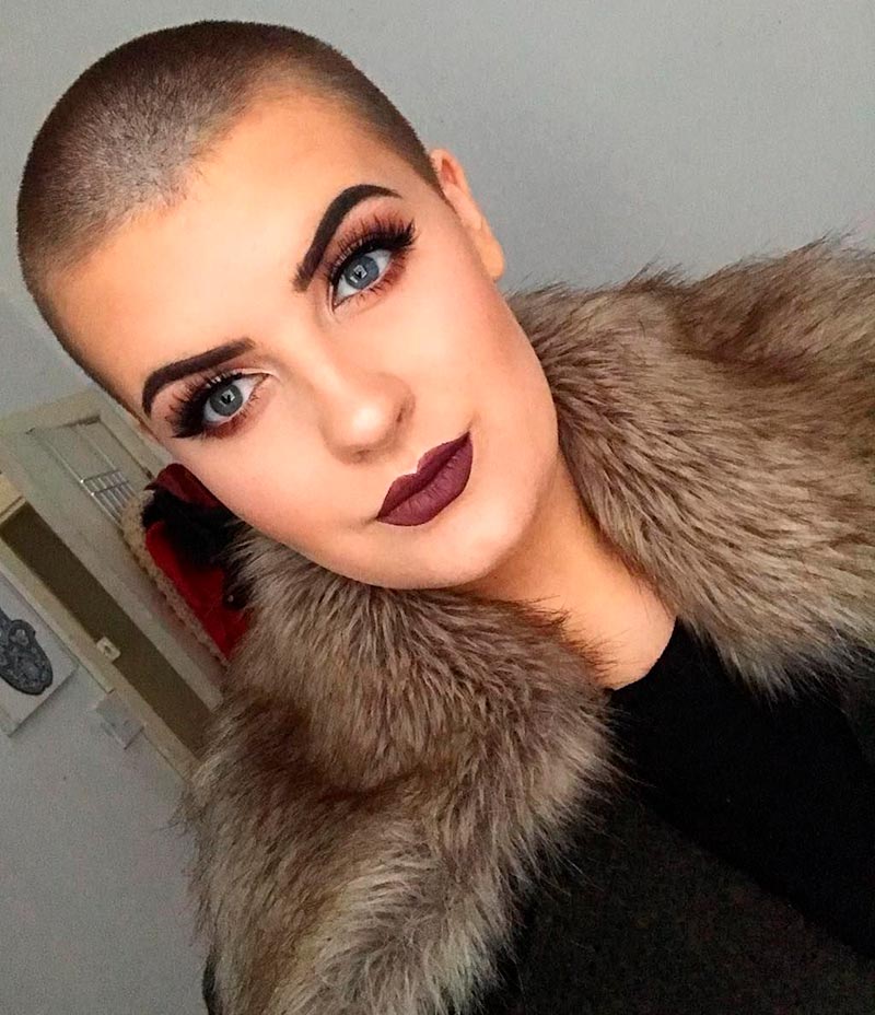 Une coupe de cheveux chauve et des coupes de cheveux très courtes pour les femmes sont idéales pour celles qui ne veulent pas perdre de temps sur la beauté traditionnelle. Une fille avec une tête chauve a l'air plus masculine et peut-être même brutale. Il est maintenant à la mode d'effacer les frontières entre masculin et féminin en tout. Les vêtements et accessoires masculins grossiers se sont installés dans le vestiaire féminin, la parfumerie s'adapte également aux nouvelles réalités.