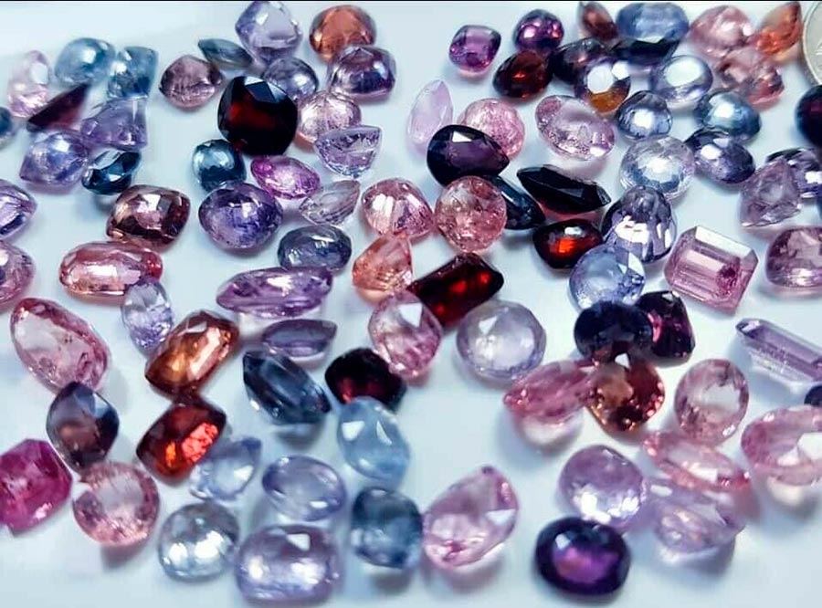 Les pierres sur lesquelles se trace le chemin de l'histoire sont pour la plupart rougeâtres. Mais la palette de couleurs des spinelles est variée. En couleur, les pierres diffèrent en rouge sang - rubis, rose-rouge - balay-rubis, violet-rouge - spinelle almandin, orange-rouge et jaune - rubis, bleu et bleu - spinelle saphir et ganospinel, vert vif - chlorospinel, -vert foncé - pléonaste ou ceylonite.