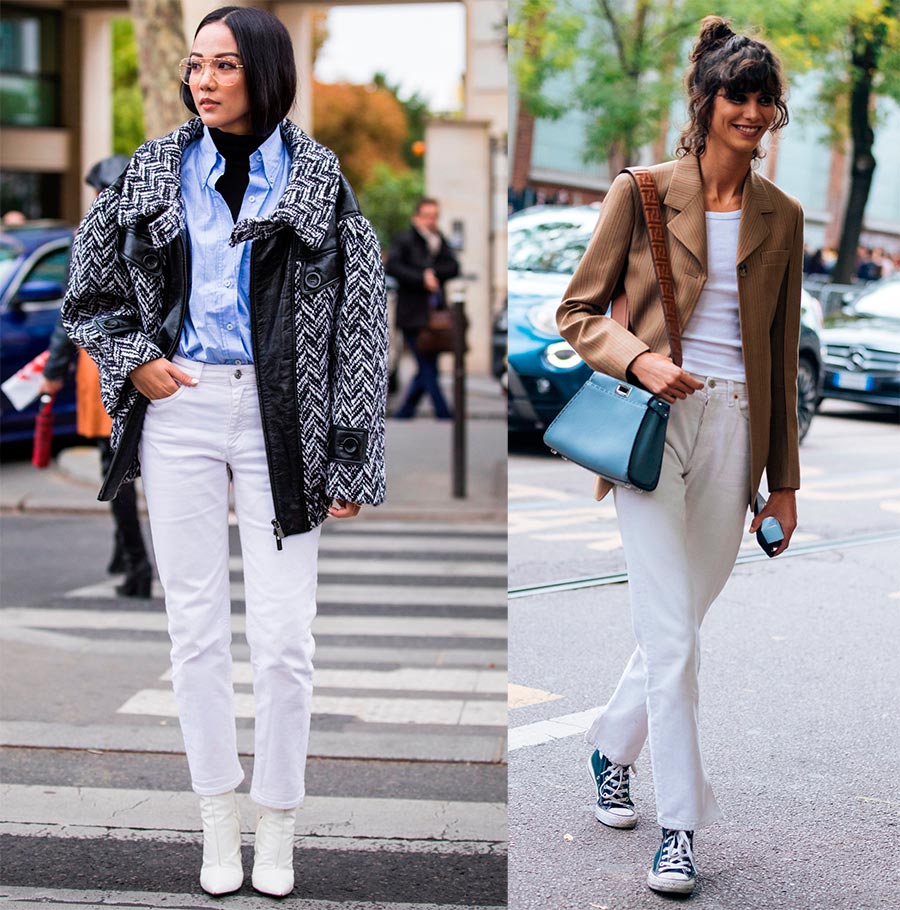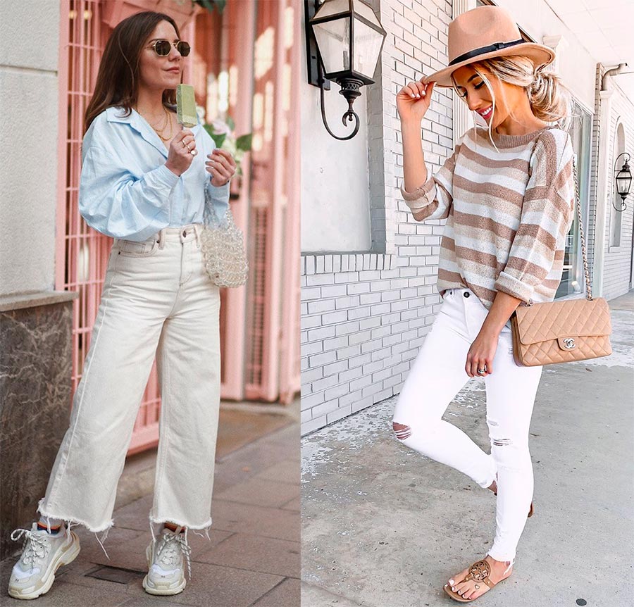 L'un des modèles les plus préférés pour l'été pour beaucoup est le jean blanc. Ils sont polyvalents, ils peuvent être portés au bureau avec une veste business. Et qu'elles iront bien avec des baskets, des ballerines ou des espadrilles !