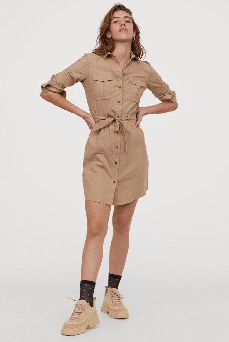 - Une variété de robes chemises, largement représentées dans la collection actuelle. Les robes de style safari sont particulièrement pertinentes.
