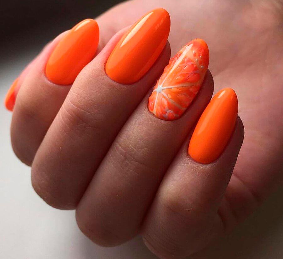 Les agrumes peuvent être sur nos tables non seulement en été, car ils sont exotiques et sont importés des pays chauds même en hiver. Mais c'est en été dans la manucure "agrumes" que vous pourrez incarner les couleurs les plus en vogue de 2026. Pour les oranges vifs, utilisez des nuances d'orange chaudes Orange Peel, Orange Tiger ou Saffron, pour des citrons juteux mélangez Cheddar et Sunlight, pour les limes choisissez Ciboulette ou Eden. Dessinez des mandarines sur une branche ou des tranches d'agrumes sur chaque ongle - votre imagination est illimitée.