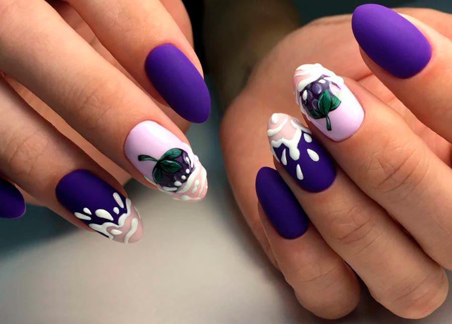 Des fraises mûres parfumées, des framboises vives, des mûres noires, ainsi que des fruits d'arbres, de pêches, de prunes et même de raisins - tout cela peut être peint en toute sécurité sur des ongles de toute longueur en été 2026. Utilisez des couleurs et des nuances riches, et pour le fond - quelque chose de léger et de neutre. Comment dessiner les baies les plus naturelles ? Découvrez ces idées de photos et inspirez-vous-en ! Ou vous pouvez vous inspirer de la corbeille de fruits sur votre table.
