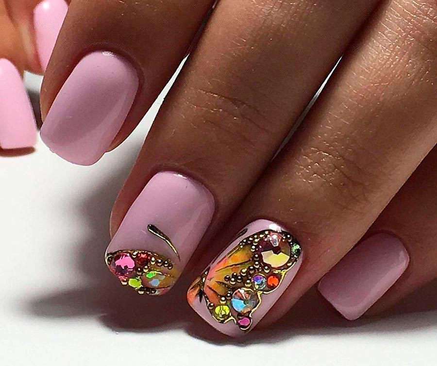Une autre version complètement romantique et incroyablement délicate de la manucure de printemps et d'été est une conception d'ongles avec des papillons flottants. Cependant, ils n'ont pas du tout besoin de déployer leurs ailes: vous pouvez dessiner un papillon assis qui a plié deux ailes en une seule - c'est plus pratique et plus facile à réaliser sur un seul ongle. Et sur le prochain souci, il peut y avoir une continuation d'une aile brillante.