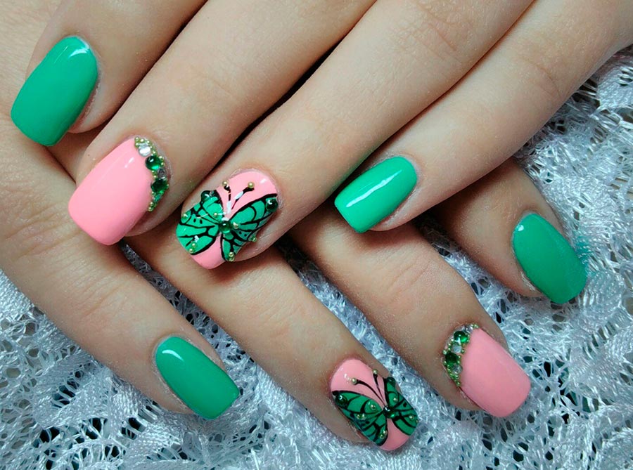 La manucure papillon est l'une des plus appréciées des filles, quel que soit leur âge ou leur mode de vie. Après tout, les papillons sont disponibles dans une variété de nuances et vous pouvez donc choisir vos couleurs préférées à la fois pour l'arrière-plan et pour l'image elle-même. Dessinez un papillon sur chaque ongle ou un seul, en utilisant des teintes assorties pour les autres doigts. Inspirez-vous de la beauté vrais papillons dans la nature ou des photos sélectionnées par nos soins.